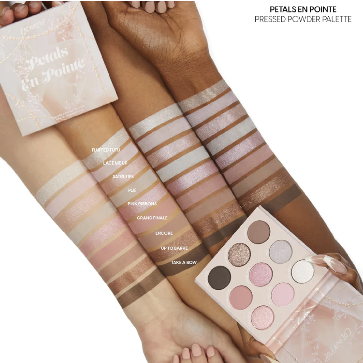 Nâng tầm với 9 gam màu hồng ballet, bạc và trung tính hàng ngày trong các kết cấu Matte, Metallic và Matte Sparkle. Sản phẩm có công thức bột phấn siêu đậm màu, lâu trôi, thoa đều và kết hợp mượt mà.